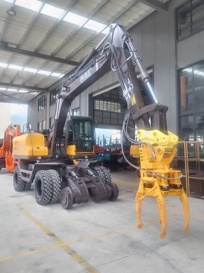 Колёсный экскаватор может передвигаться как по дороге или пересечённой местности, так и по рельсам, для чего он оснащён стальными ж.д. колёсами с системой гидравлического опускания и подъёма железнодорожных осей. Кроме стандартного ковша и навесного оборудования для экскаваторов, предусмотрено различное навесное оборудование для выполнения ремонтных работ на железной дороге: шпалоподбойки на 4 или 8 костылей, бара для выемки щебня, захват для шпал, просеиватель щебня, планировочный ковш и так далее.